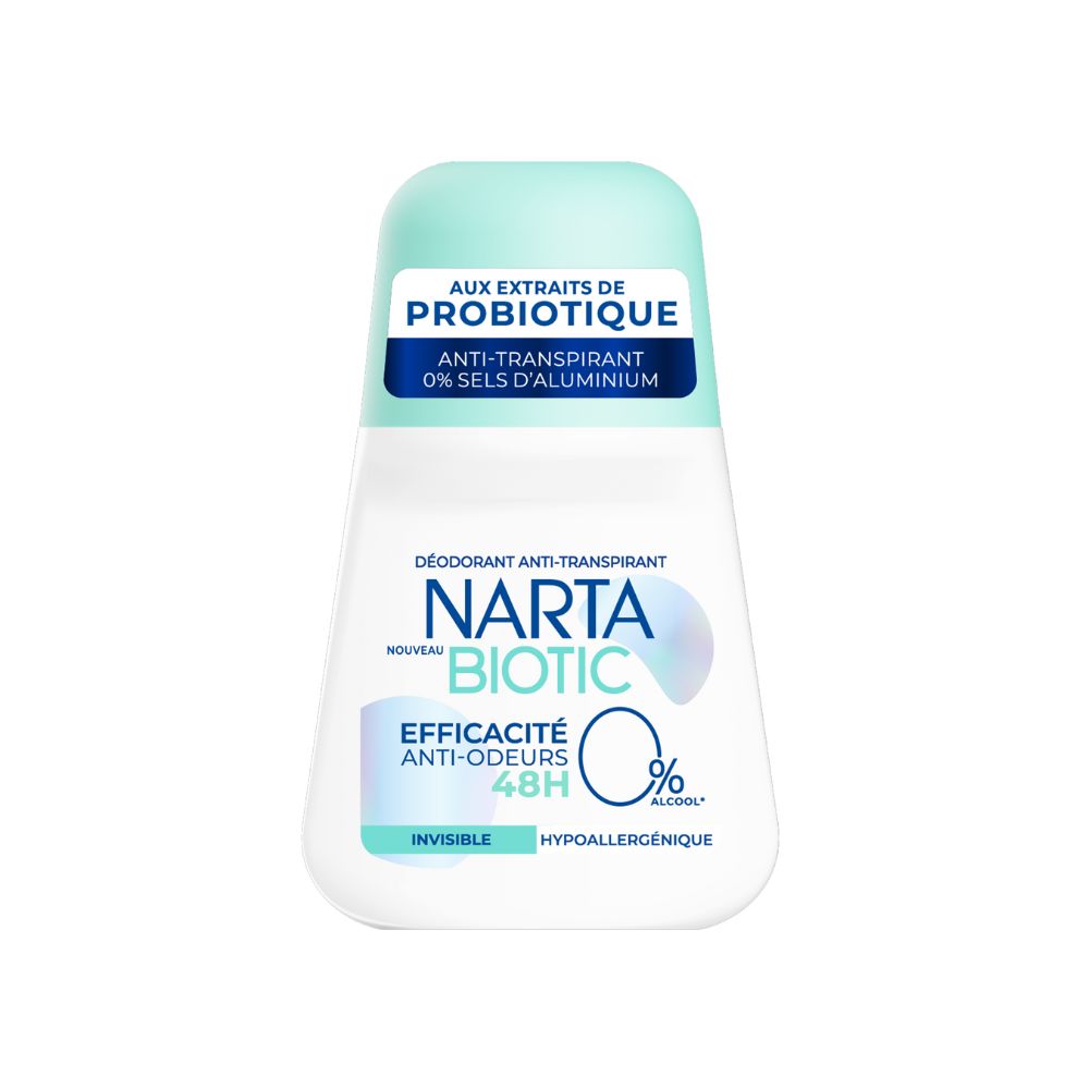 Vous voulez un déodorant anti-transpirant qui vous protège efficacement sans laisser de traces sur vos vêtements ? Découvrez le déodorant Narta Biotic Invisible, le déodorant anti-transpiration qui respecte votre peau et vos habits 48h. Le déodorant Narta Biotic Invisible est enrichi aux extraits de probiotique, respectueux de la peau. Sans alcool*, il neutralise les mauvaises odeurs, sans laisser de traces blanches ou jaunes sur les vêtements. Ce déodorant sans sel d’aluminium vous assure une sensation de fraîcheur et de confort tout au long de la journée.