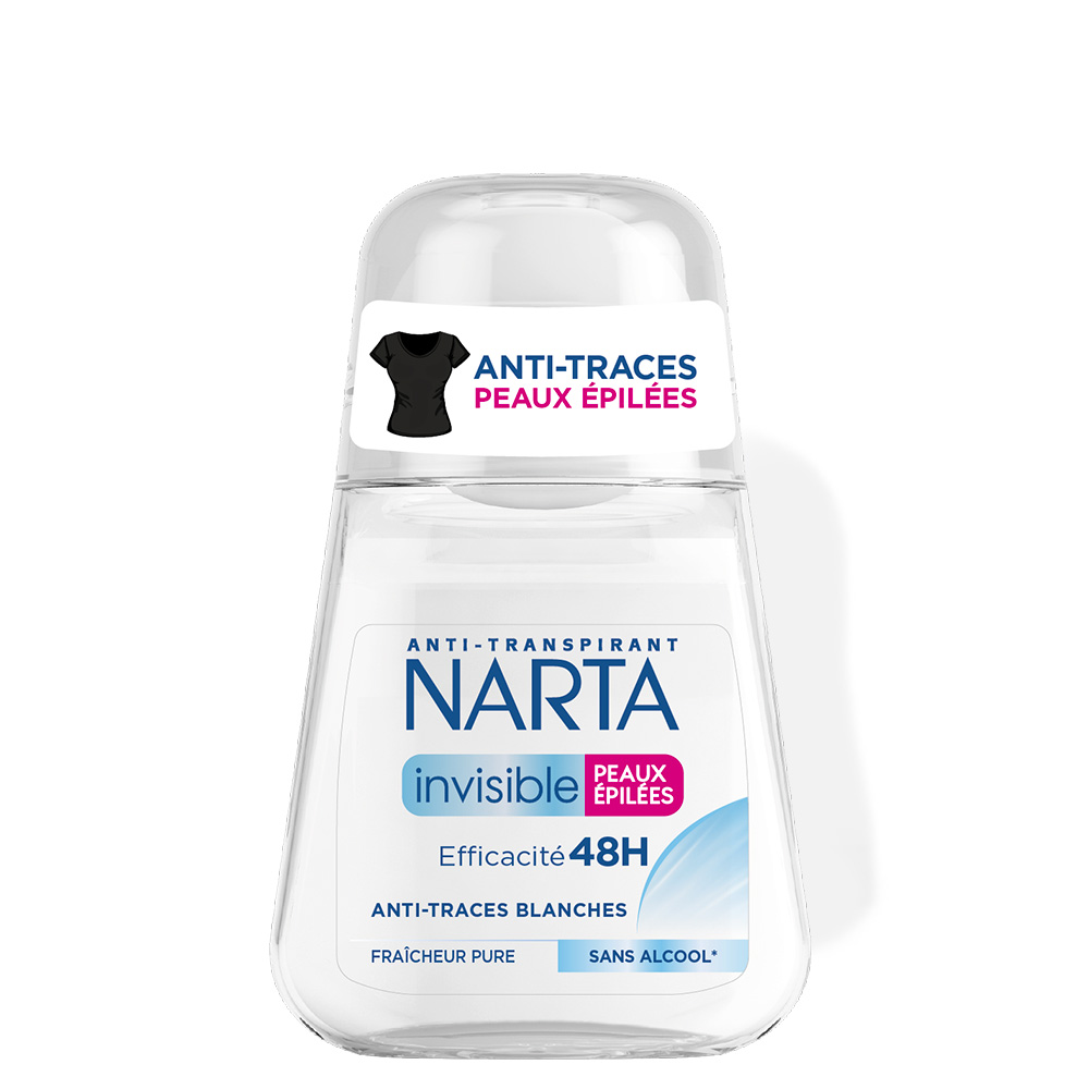 - L'anti-transpirant Narta Invisible Peaux Epilées vous assure une efficacité anti-traces pour se débarrasser des traces blanches sur la peau comme sur les vêtements. Sa formule sans alcool respecte votre peau et le mécanisme naturel de transpiration.
