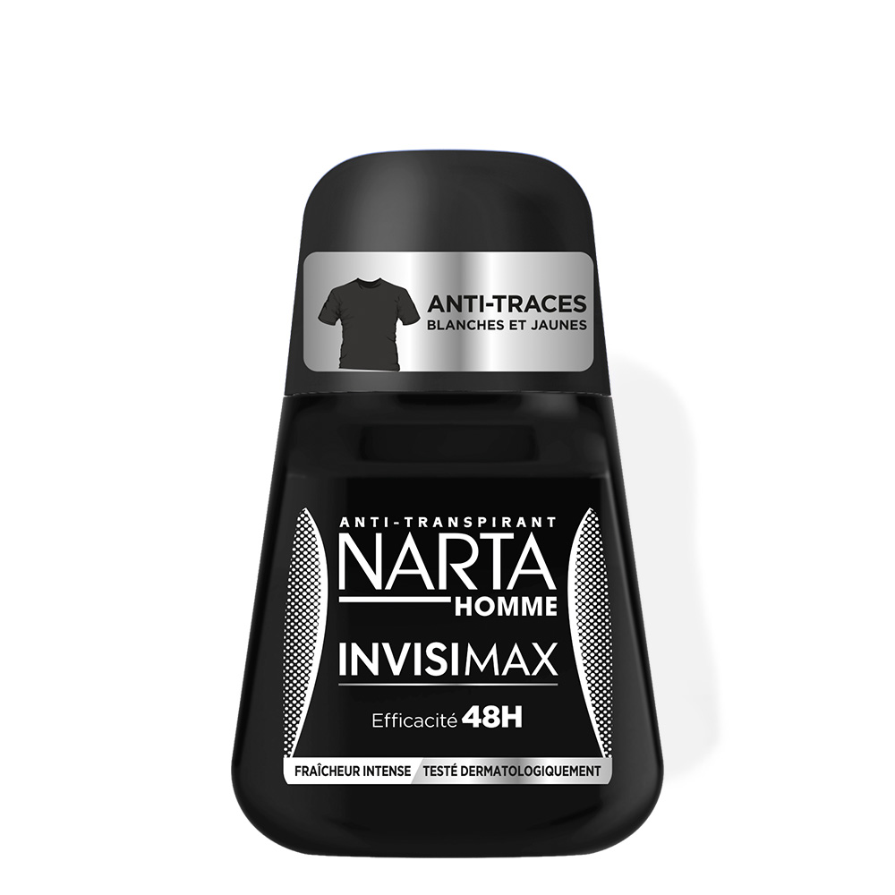 - L'anti-transpirant Narta Homme Invisimax vous assure une efficacité anti-traces pour se débarrasser des traces blanches sur les vêtements. Il respecte votre peau et le mécanisme naturel de transpiration.